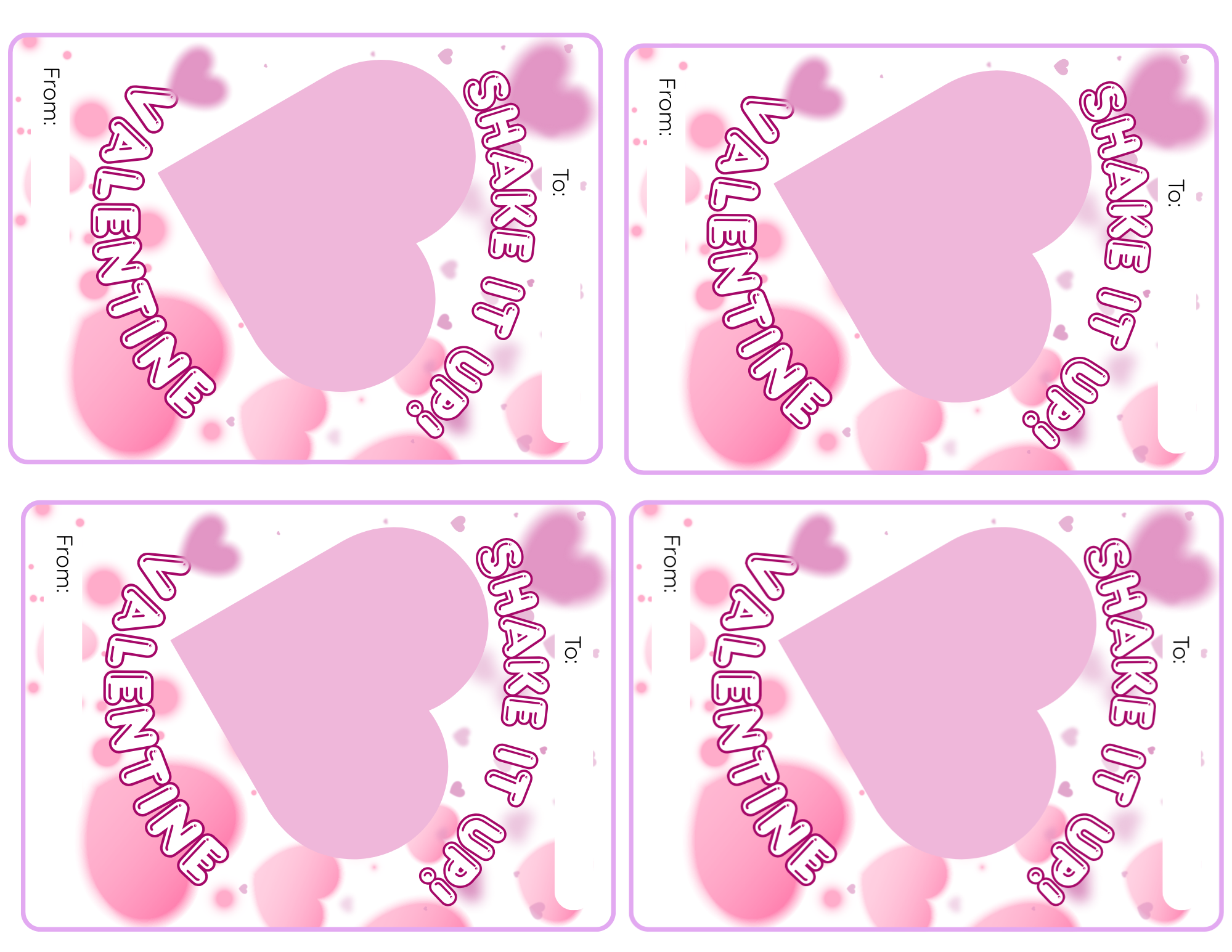 The printable has 4 Valentine Shaker Cards per page.